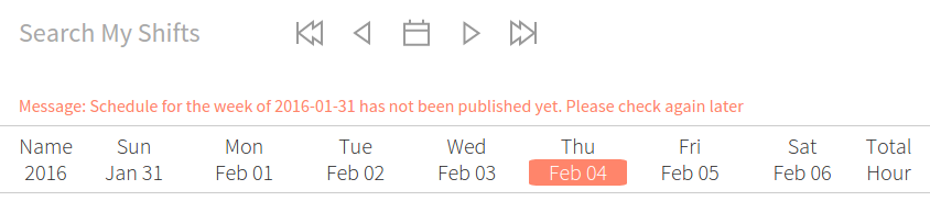 If the managers have not published the schedule yet, you will see the messege as below: